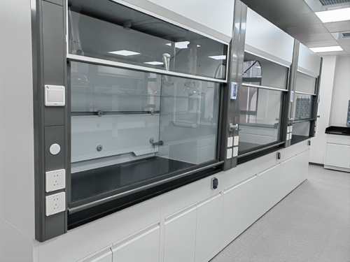 2)照明燈:所采用半圓形能效孔燈,都隱藏于頂板上,不與通風工作柜上實驗檢測室氣體直觀接觸性,易調整,曝光度基本滿足需要實驗標準要求。